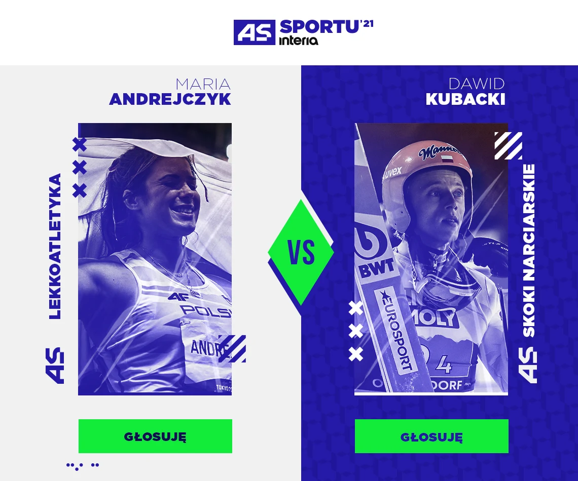 Trwa plebiscyt Interii "As Sportu 2021", w którym Czytelnicy portalu wybierają najlepszego sportowca mijającego roku! W trzeciej parze 1/8 finału Hubert Hurkacz pokonał Patryka Dobka. Dziś mierzą się ze sobą oszczepniczka, srebrna medalistka IO Maria Andrejczyk oraz skoczek narciarski Dawid Kubacki, srebrny medalista Letniego Grand Prix i trzeci najlepszy zawodnik Turnieju Czterech Skoczni. Kto powinien awansować do kolejnej fazy? Poznaj sylwetki kandydatów i oddaj głos w naszej ankiecie!