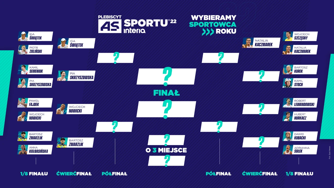 W pierwszym etapie Użytkownicy wskazali najlepszą szesnastkę kandydatów i kandydatek, którzy przeszli do 1/8 finału - teraz sportowców czekają pojedynki w systemie pucharowym.