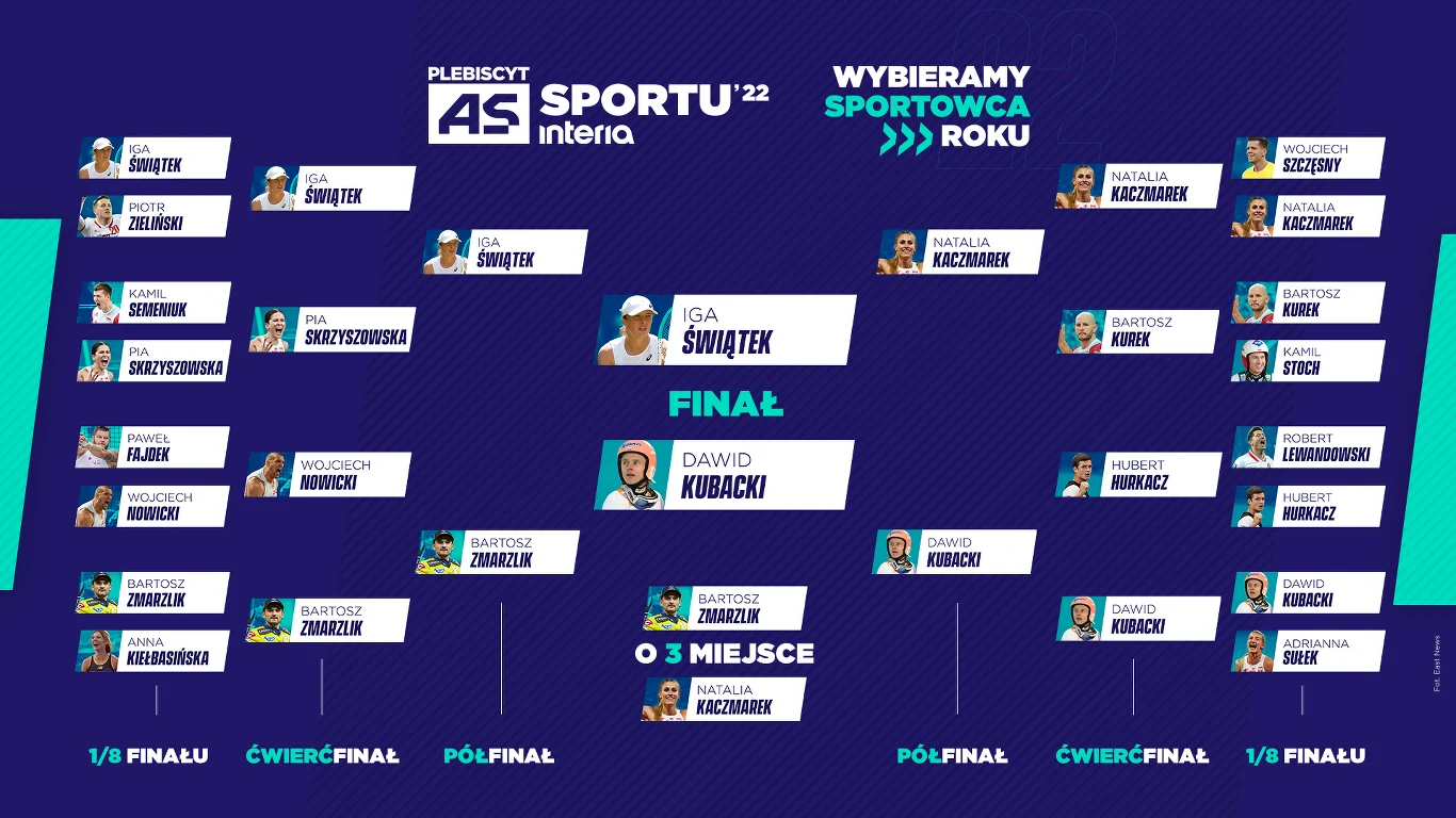 Trwa plebiscyt Interii "As Sportu 2022", w którym Czytelnicy portalu wybierają najlepszego sportowca minionego roku! Za nami drugi półfinał, w którym Dawid Kubacki pokonał Natalię Kaczmarek. Kto powinien wywalczyć trzecie miejsce - lekkoatletka, czy może żużlowiec Bartosz Zmarzlik? Poznaj sylwetki kandydatów i oddaj głos w naszej ankiecie!