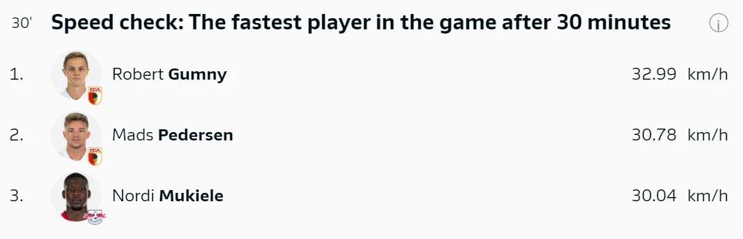 Robert Gumny w 15. minucie ambitnie pobiegł do końcowej linii za piłką i dograł w pole karne, ale nikt nie dołączył do tej akcji ofensywnej. Po 30. minutach Gumny był zawodnikiem, który rozwinął największa prędkość ze wszystkich uczestników meczu.