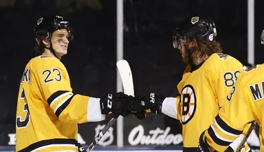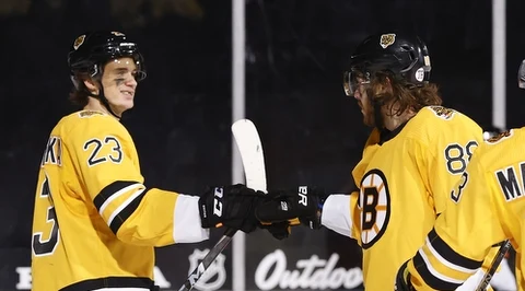NHL. Hat-trick Davida Pastrnaka pod gołym niebem