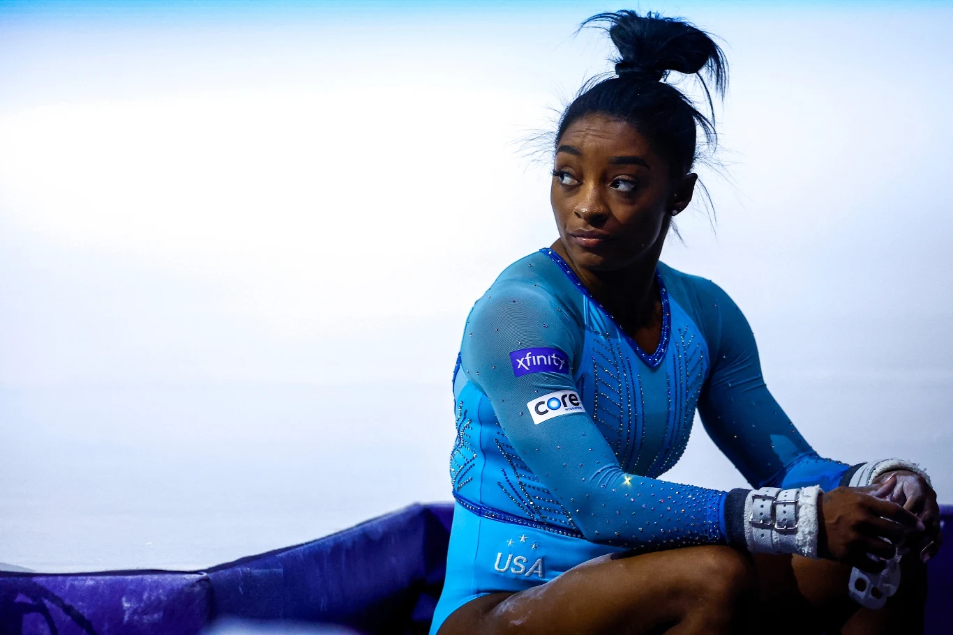 Podczas igrzysk w Tokio drużynowych zawodów Biles potknęła się na macie, przez co uzyskała najgorszy wynik. Gwiazda przytuliła się do swojego trenera i zeszła z parkietu w asyście lekarza zespołu. Po tym incydencie trener kadry USA ogłosił, że Biles nie wystąpi w finale drużynowego konkursu. Tłumaczył to załamaniem zawodniczki.Amerykanka nie wystąpiła też w wieloboju indywidualnym. Pojawiła się tylko w ćwiczeniach ba równoważni, w których zdobyła brązowy medal.