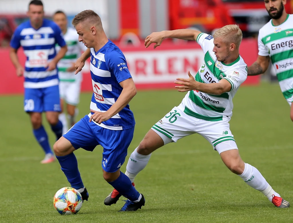 Płocczanie po stracie gola nie ruszyli do zmasowanych ataków, ale kilka razy zagrozili bramce gości. Najczęściej starali się to robić po dośrodkowaniach w pole karne. Duszan Kuciak od początku spotkania nie interweniował zbyt pewnie - niewiele brakowało, by zaskoczył go niezbyt groźny strzał z dystansu Dominika Furmana. Piłka leciała w środek bramki, odbiła się od bramkarza i przeturlała się niedaleko od słupka. Przed przerwą jeszcze jedną dobrą okazję mieli też goście, ale Lukas Haraslin z kilkunastu metrów nieznacznie się pomylił.