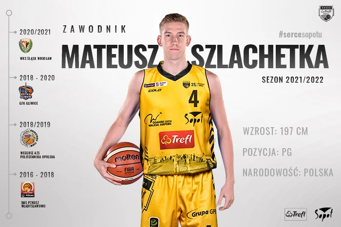 22-letni Mateusz Szlachetka został nowym zawodnikiem Trefla Sopot. Mierzący 197 cm rozgrywający w sezonie 2020/2021 zdobył ze Śląskiem Wrocław brązowy medal Energa Basket Ligi. Zawodnik podpisał z sopockim klubem dwuletnią umowę.