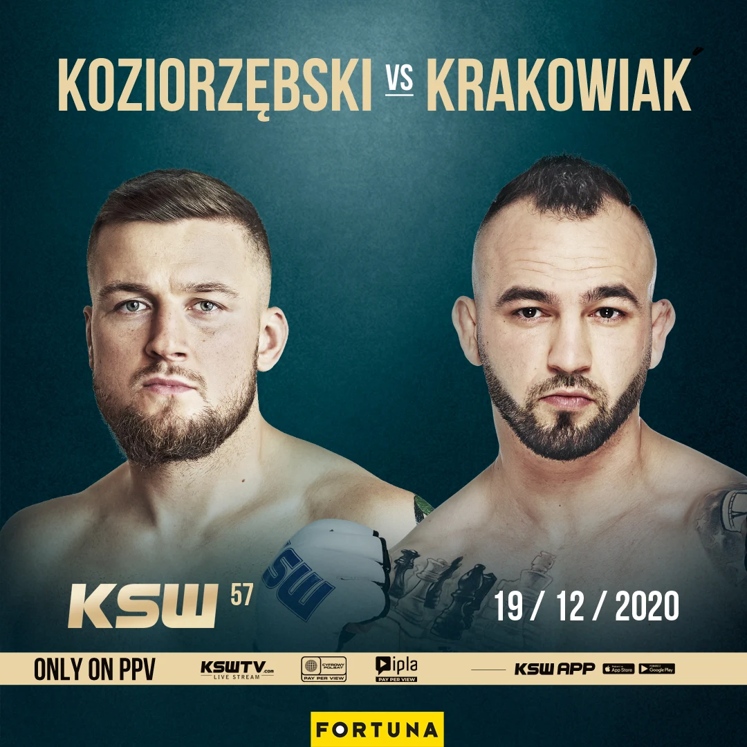 Starcie dwóch widowiskowo walczących zawodników dołącza do karty walk gali KSW 57. 19 grudnia rewelacja gali KSW 54, Kacper Koziorzębski (7-2, 4 KO) stanie naprzeciw finalisty programu „Tylko Jeden”, Marcina Krakowiaka (9-3, 4 KO, 5 Sub).