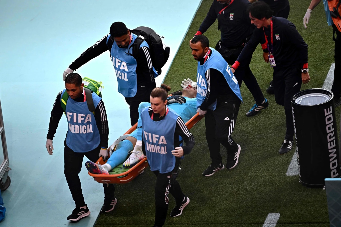 Jednak irański bramkarz bardzo szybko znów położył się na murawie i zasygnalizował zmianę. W jego miejsce wprowadzono Hosseina Hosseiniego.