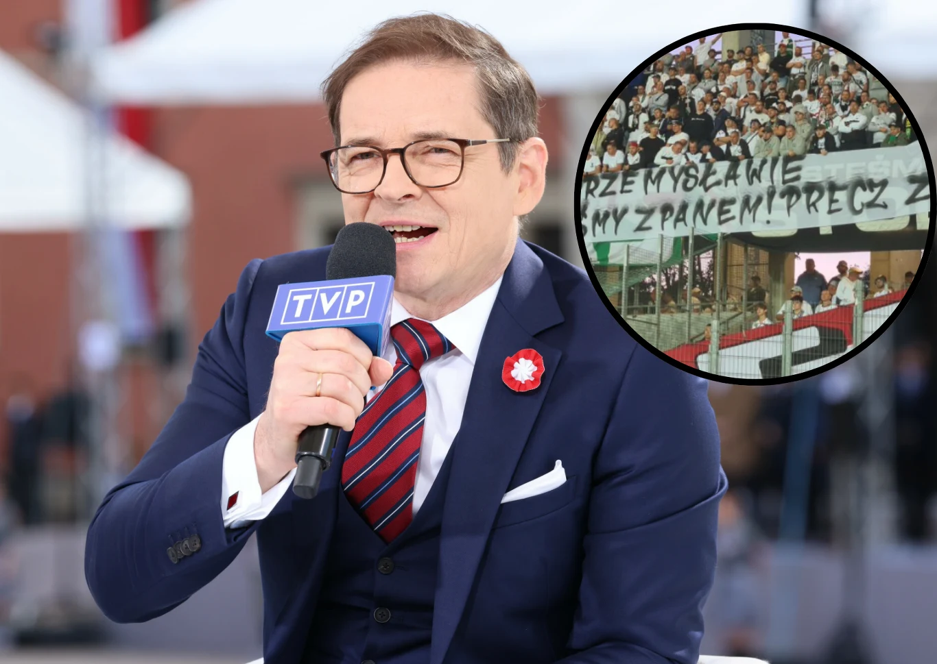 Zaskakujące obrazki z Kielc. Kibice Legii wsparli Przemysława Babiarza