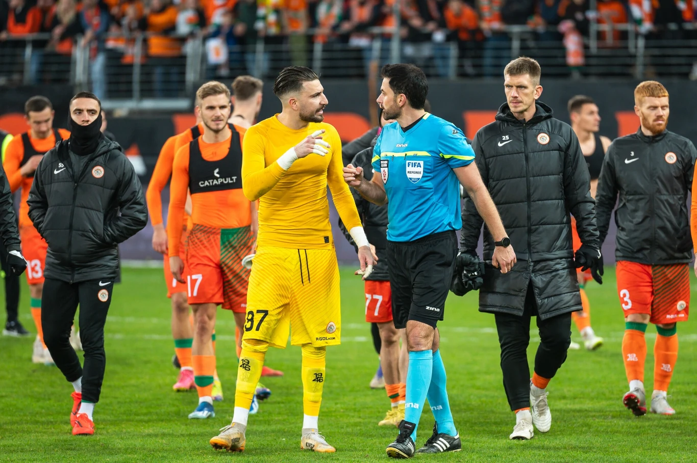 To jeszcze nie był koniec, bo Dioudis według protokołu, do którego dotarło Sport.pl, w tunelu prowadzącym do szatni próbował jeszcze raz wymierzyć sprawiedliwość i znów zaczepił Sancheza. "Bramkarz dynamicznie pobiegł tunelem w kierunku szatni i w okolicy mix-zone'y agresywnie złapał rękami za twarz, szyję i oczy rywala z nr 9 (Sancheza). Natychmiastowo gracze obydwu drużyn próbowali rozdzielić zawodników, jednak bramkarz gospodarzy nie puszczał uchwytu, obejmując i szarpiąc dłonią za twarz i oczy biernego rywal" - napisał sędzia Stefański.