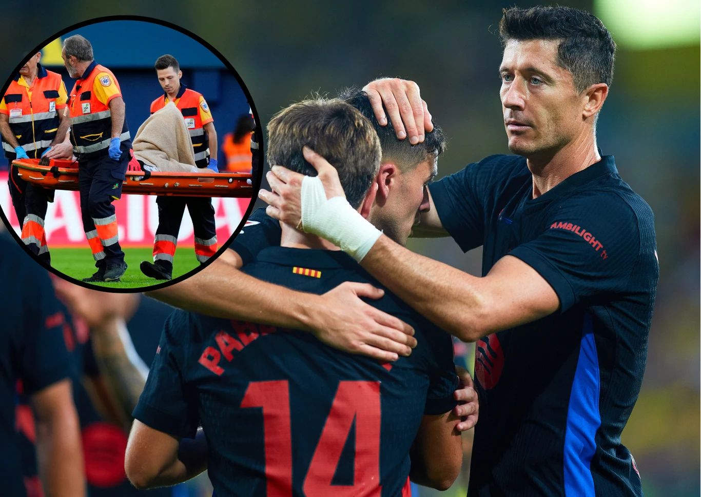 W doliczonym czasie pierwszej połowy kapitan Barcy bardzo pechowo lądował po wyskoku do jednego z dośrodkowań i padł na murawę. Inigo Martinez i Gerard Martin od razu wiedzieli, że doszło do koszmarnej kontuzji i natychmiast sygnalizowali konieczność zmiany. Zawodniczy znajdujący się najbliżej skrywali twarz w dłoniach, a sędzia błyskawicznie wezwał medyków z noszami.