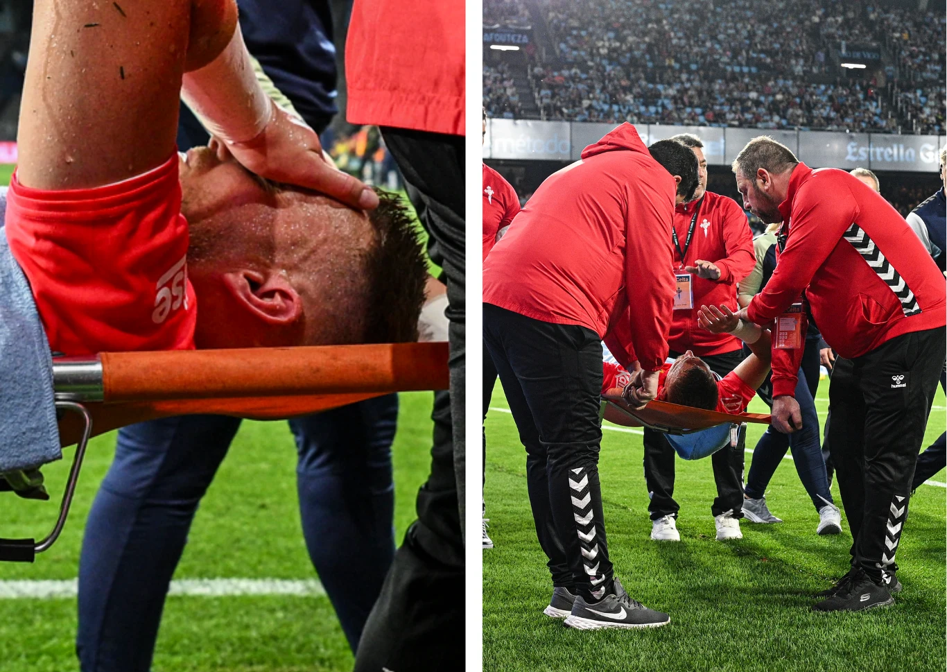 W pierwszej połowie potyczki doszło bowiem do naprawdę groźnego zdarzenia - w pewnej chwili bramkarz gości, Jasper Cillessen, wyszedł z interwencją w kierunku dobiegającego do futbolówki Borji Iglesiasa. Golkiper co prawda skutecznie sięgnął piłki, ale jednocześnie zderzył się z rywalem: