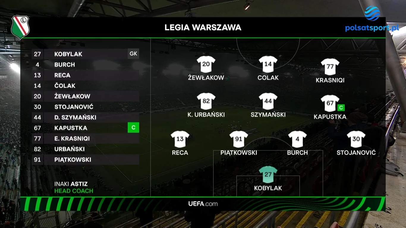 Legia Warszawa po długiej serii bez zwycięstwa przerwała passę efektownym triumfem 4:1 nad gibraltarskim Lincoln Red Imps w ostatnim meczu fazy ligowej Ligi Konferencji UEFA. Gole dla Legii zdobyli Antonio Čolak (21'), Bartosz Kapustka (62'), Mileta Rajović (70') i Vahan Biczachczjan (83'), a jedyną bramkę dla gości strzelił Tjay De Barr (89'). Mimo zwycięstwa, Legia kończy przygodę z europejskimi pucharami.