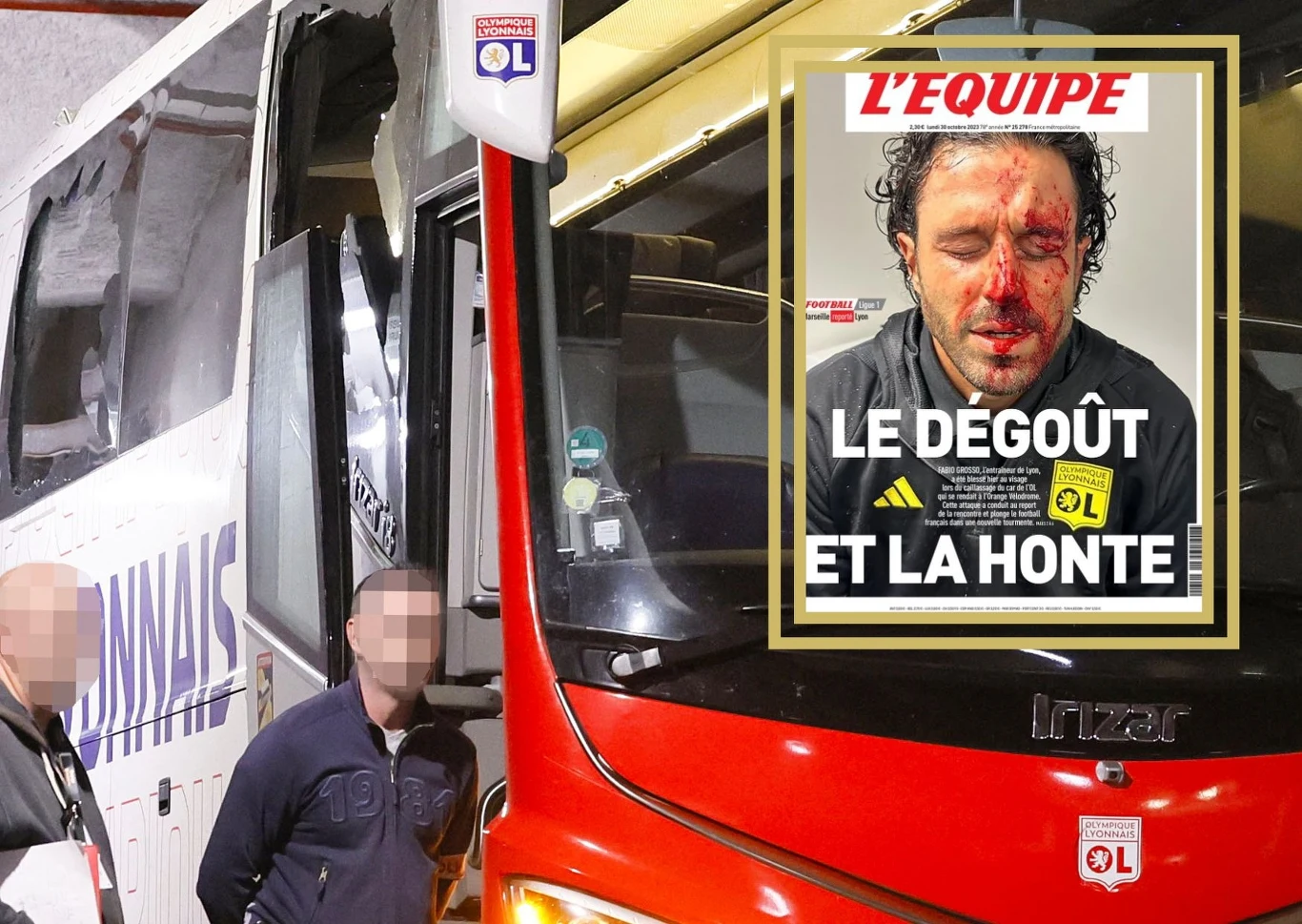 Jak donoszą francuskie media, zbliżający się do obiektu autokar z ekipą Lyonu został zaatakowany kamieniami i betonowymi elementami przez kiboli z Marsylii i okolic. Ranny został trener Fabio Grosso. Obficie krwawił po opuszczeniu pojazdu, nie widział na lewe oko.