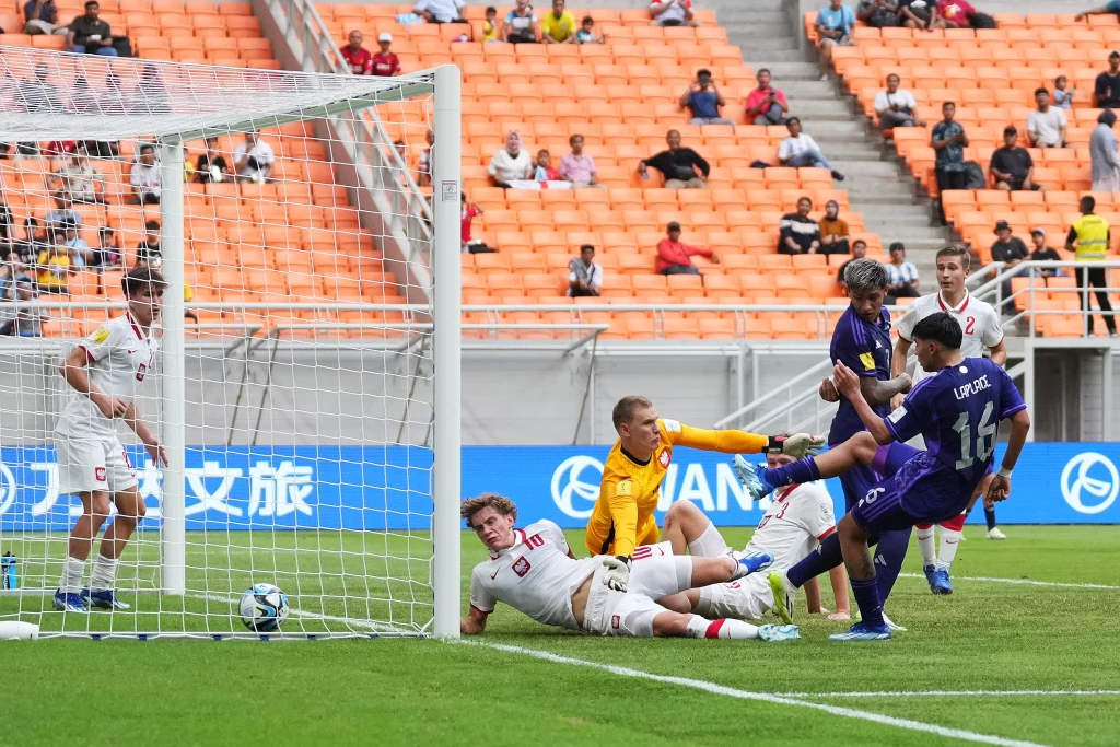 W 77. minucie po kolejnej akcji Borysa Mikołajewski uderzył przewrotką, ale trafił w słupek. Argentyna wyprowadziła błyskawiczną kontrę, ale Matys znów wygrał pojedynek, tym razem z Franco Mastantuono. Za trzecim razem już się nie udało i Lopez strzelił czwartą bramkę dla rywali.
