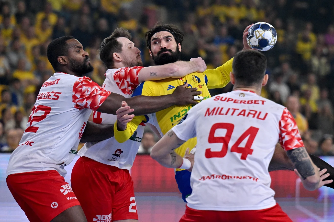 Dwie bramki to niewiele, zwłaszcza że kielczanie zaczęli drugą część w osłabieniu, a Dinamo miało piłkę. Kielczanie dość szybko finiszowali ze swoimi akcjami, to było pozytywne. A Rumuni się męczyli, na niezły poziom wskoczył też Ferlin. Co z tego, skoro za moment wicemistrzowie Polski zaczęli marnować świetne okazje, m.in. Dylan Nahi w kontrze chciał... lobować Cuparę. I z 24:21 zrobiło się 24:24, a w 39. minucie Dinamo prowadziło 25:24, za moment - 26:24. Mało tego, Theo Monar i Szymon Sićko dostali zaraz po sobie kary dwóch minut.