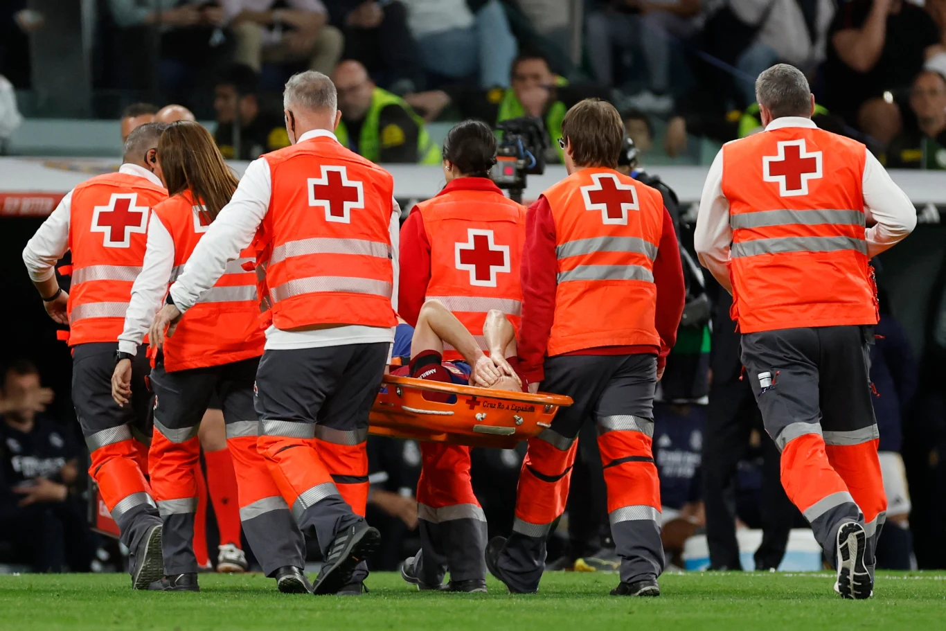 Pomocnik Barcelony nie był w stanie kontynuować gry. Opuścił murawę na noszach. W jego miejsce na boisku pojawił się niedawny rekonwalescent, Pedri.