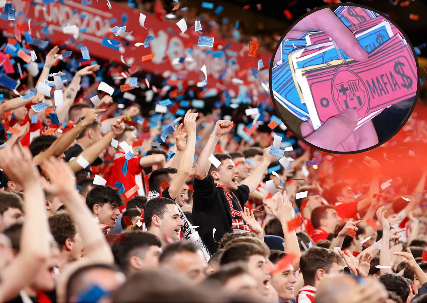 Kibice Athleticu Bilbao w trakcie meczu z FC Barcelona nie bawili się w żadne oświadczenia. Przeprowadzili spektakularną akcję polegająca na wysypaniu na rywali imitacji banknotów z napisem "Mafia".
