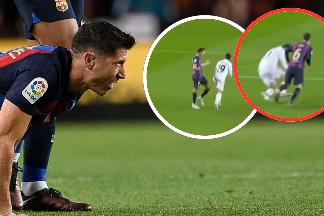 Do wspomnianej sytuacji doszło w 89. minucie spotkania przy remisie 1:1. Dani Ceballos otrzymał wówczas piłkę na własnej połowie i zagrał ją na lewe skrzydło, gdzie zbiegł Karim Benzema, rozpoczynając w ten sposób kontratak Realu Madryt. Do hiszpańskiego pomocnika doskoczył Robert Lewandowski, chcąc zabrać mu piłkę. Piłkarz "Królewskich" był szybszy, lecz po podaniu wpadł lekko w naszego reprezentanta.