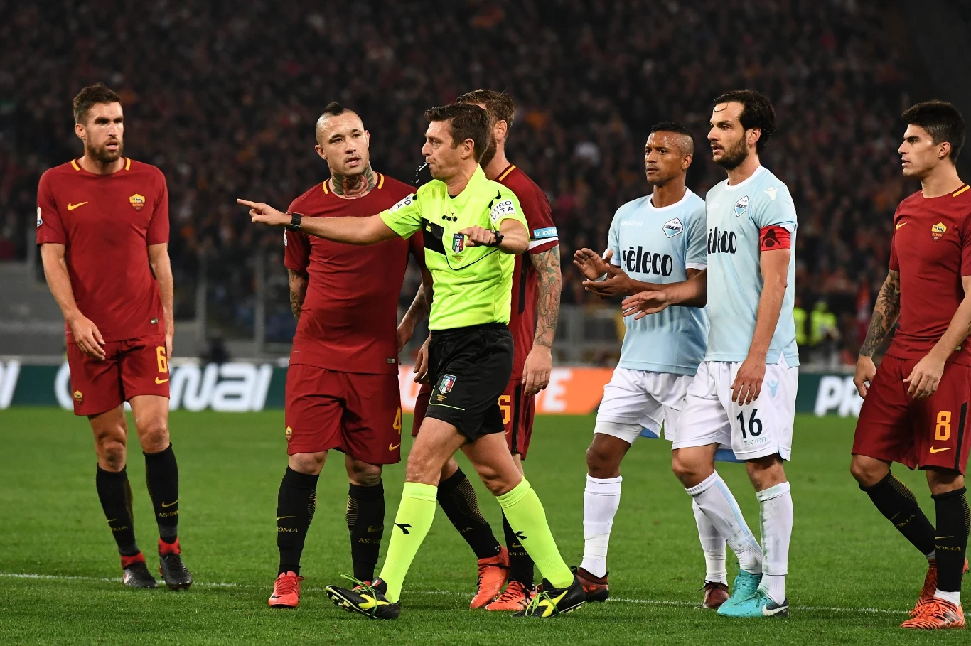 Roma wygrała 2-1 z Lazio w 147. derbach Rzymu. Trzy punkty ekipie Giallorossich zapewniły trafienia Diego Perottiego i Radji Nainggolana. Lazio odpowiedziało jedynie trafieniem Ciro Immobile.