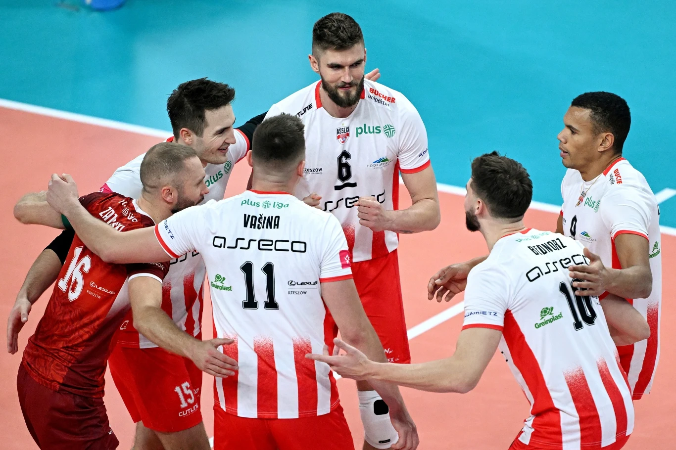 Asseco Resovia: Boyer, Kłos, Vasina, Ropret, Woch, Bednorz - Zatorski (libero) oraz Cebulj, Sapiński