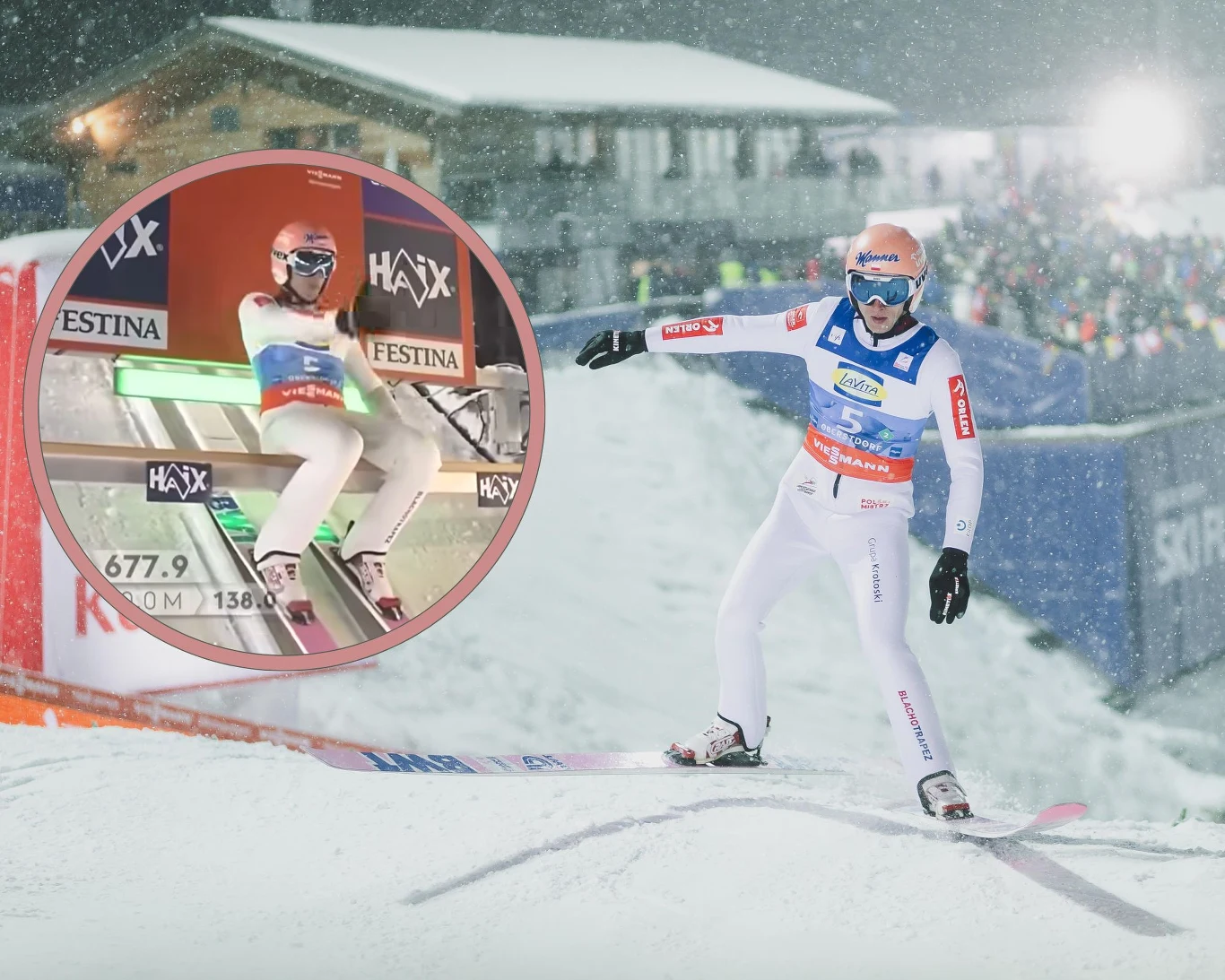 W serii finałowej, odbywającej się przy gęstym i mokrym śniegu, nagle na belce zaczął machać rękami Dawid Kubacki. Od kilku sekund już paliło się zielone światło, ale nasz skoczek nie ruszał.
