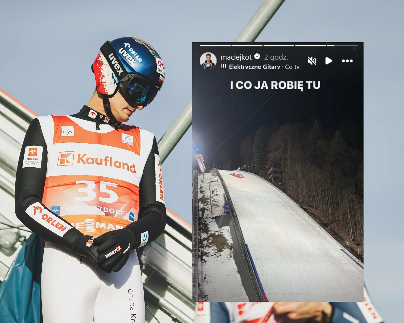 Kot zatem utworzył na Instagramie relację z widokiem skoczni i piosenkę "Elektrycznych Gitar" - "I co ja robię tu?"