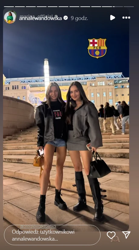 Ostatnio Marina znalazła jednak czas, by udać się na mecz nowego klubu jej męża. Towarzyszyła jej sama Anna Lewandowska. Panie pochwaliły się wspólną fotką na Instagramie, zwracają uwagę krótkimi spódniczkami, dzięki którym mogły wyeksponować długi nogi.