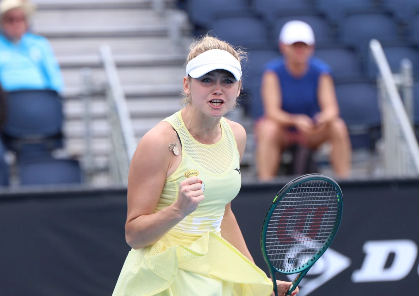 Od tej pory wydarzenia na korcie rozwijały się po myśli 21-latki. Najpierw potwierdziła przewagę własnym serwisem, a potem jeszcze raz wywalczyła przełamanie. Na koniec siódmego gema Jones popełniła podwójny błąd przy podaniu i dzięki temu przy stanie 5:2 Polka mogła zamykać premierową odsłonę. Pojawiło się trochę problemów ze względu na podwójne błędy serwisowe, rywalka otrzymała break pointa. W kluczowym momencie wymiany trafiały jednak na konto Klimovicovej. Ostatecznie 134. tenisistka rankingu WTA zwyciężyła w otwierającej partii 6:2.