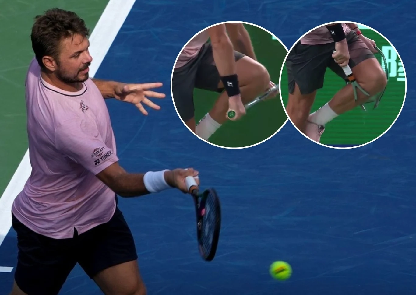 W tym spotkaniu doszło jednak do jeszcze jednej specyficznej sytuacji. Jak zaznaczyliśmy, Szwajcar wygrał pierwszą partię. W drugiej prowadził już 2:0. W trzecim gemie była równowaga, ale Szwajcar "podłączył" rywala do gry, zagrywając autowy bekhend. Zaraz po tym, jak piłka spadła za linię końcową, powolnym ruchem ustawił rakietę przed kolano i złamał na pół. Nie wyrażał przy tym żadnych emocji na twarzy.