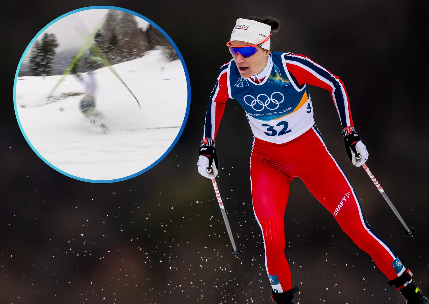 Niespełna kwadrans po wylądowaniu na śniegu przeżyła sportowy koszmar - upadła po raz drugi. Znowu miała problem na zjeździe, lewą nartą podcięła prawą i zrobiła fikołka. Wypięło się jej wiązanie z narty, musiała przebiec kilkaset metrów na jednej, dopiero wtedy natknęła się na jednego ze swoich serwismenów, który podał jej nową. Całe zdarzenie oznaczało w zasadzie pożegnanie z szansą na złoto. Karlsson aż nie dowierzała, oglądając to na dużym ekranie. Andersson mogła się poczuć jak łyżwiarz Ilja Malinin, który w programie solistów również przez dwa upadki stracił szanse na wygraną.