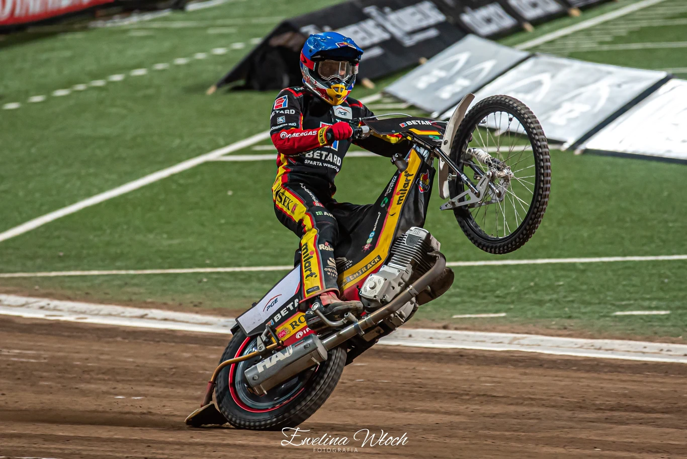 Spodziewaliśmy się zaciętego meczu we Wrocławiu i taki też był. Z jednej strony piekielnie silna u siebie Betard Sparta z wracającym do składu Taiem Woffindenem, a z drugiej Fogo Unia, która też była na zwycięskiej ścieżce i chciała się pokusić o kolejną wygraną. Zresztą pojedynek tych dwóch drużyn można by porównać do starć Legii Warszawa z Lechem Poznań w piłkarskiej Ekstraklasie, czy Der Klassiker z udziałem Bayernu Monachium i Borussi Dortmund. Zostawmy jednak te porównania na boku i dodajmy, że dla gospodarzy zwycięstwo w tym meczu było sprawą honorową. W ostatnich latach to zespół z Leszna napsuł im najwięcej krwi i niejednokrotnie pozbawiał szans na zdobycie Drużynowego Mistrzostwa Polski.To słowem wstępu, bo choć wiele mówiło się o tym spotkaniu, to szybko przekonaliśmy się, że wcale nie na darmo, bo obejrzeliśmy we Wrocławiu wielkie widowisko. Betard Sparta zgodnie z oczekiwaniami wykorzystywała atut własnego toru, nie pozwalając gościom ani na chwilę objąć prowadzenie. Wynik co prawda oscylował początkowo w okolicach remisu, jednak z czasem miejscowi zaczęli budować delikatną przewagę. Było to możliwe przede wszystkim dzięki doskonałej trójce - Janowski, Łaguta i Woffinden. Swój koncert grał pierwszy z nich, który był dla rywali w zasadzie niełapany. Nie zawiódł tez powracający po kontuzji Brytyjczyk, który swoje zrobił, choć grymas bólu po urazie łopatki ciągle towarzyszył na jego twarzy.